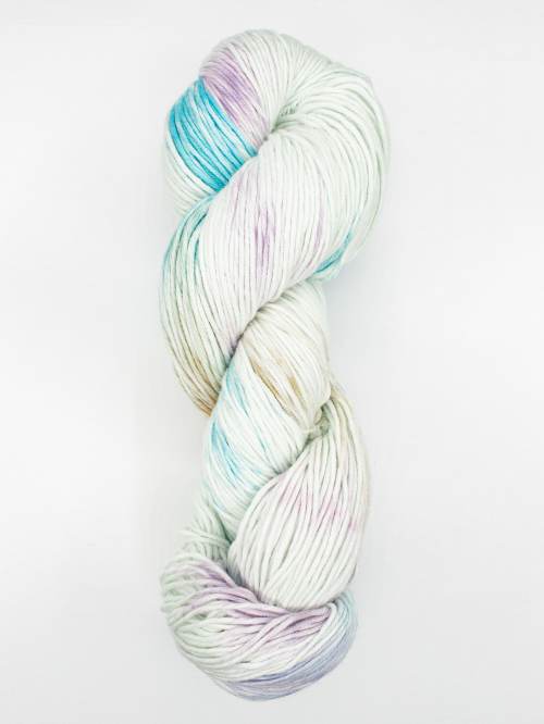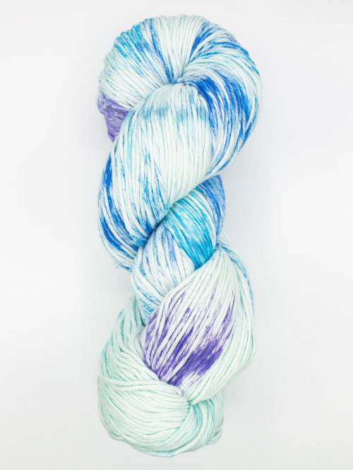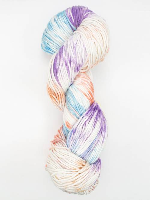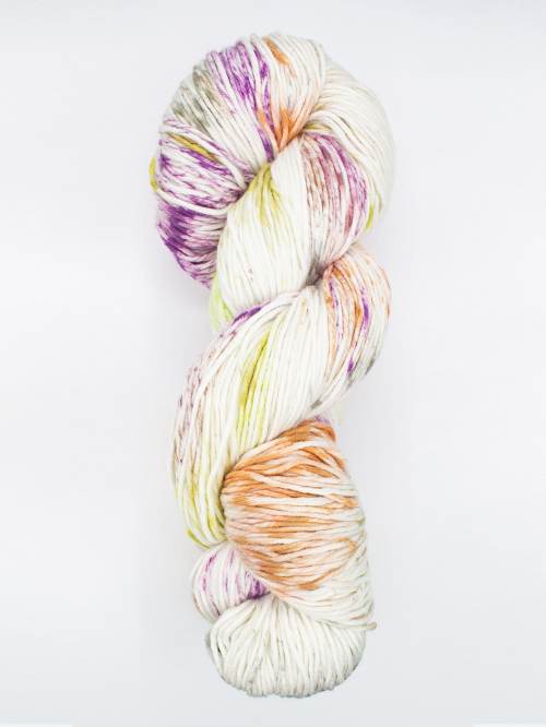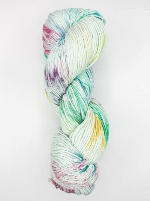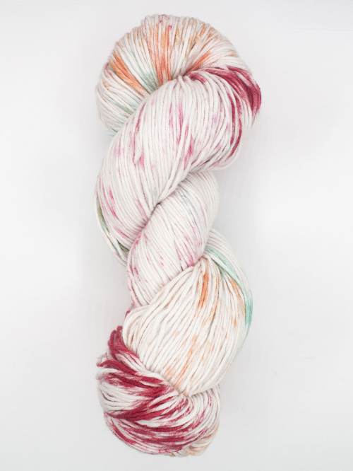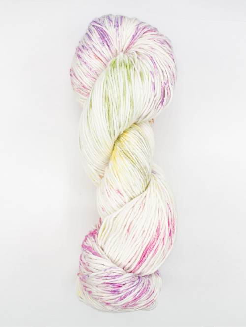 The eight available multicolors have to be seen to be appreciated! Bright yet subtle splotches of color are hand painted onto a white base resulting in a yarn that reads like a delicate Impressionist painting.