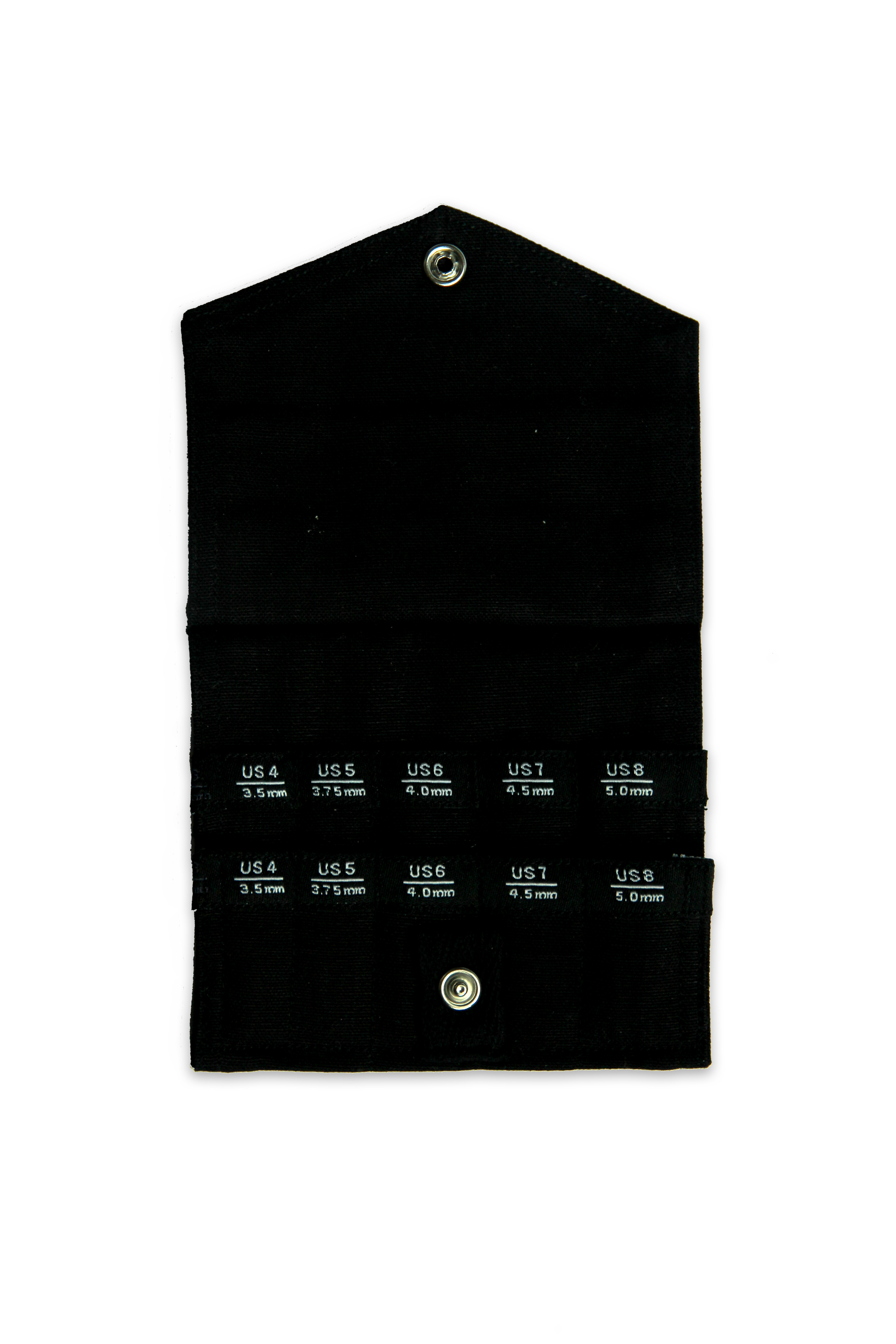 With our Blue Shorties™ set you can make 9″ (23 cm) through 14″ (36 cm) circulars. This set includes 10 sets of 2″ (5cm) solid stainless steel & 3″ (8cm) hollow stainless steel interchangeable tips from US4 – US8 (3.5 – 5mm). Also included is a secure tip sleeve, three [S] diameter X-Flex blue cables (5″/13cm, 6″/15cm & 8″/20cm), end stoppers, tightening keys, connectors, stitch markers and a mini needle gauge all in a blue, pocket-sized nylon fabric pouch. The 2″ (5cm) solid tips have a tightening hole to ensure you get a secure connection. The 3″ tips are hollow and do not have a tightening hole. Only available in blue.