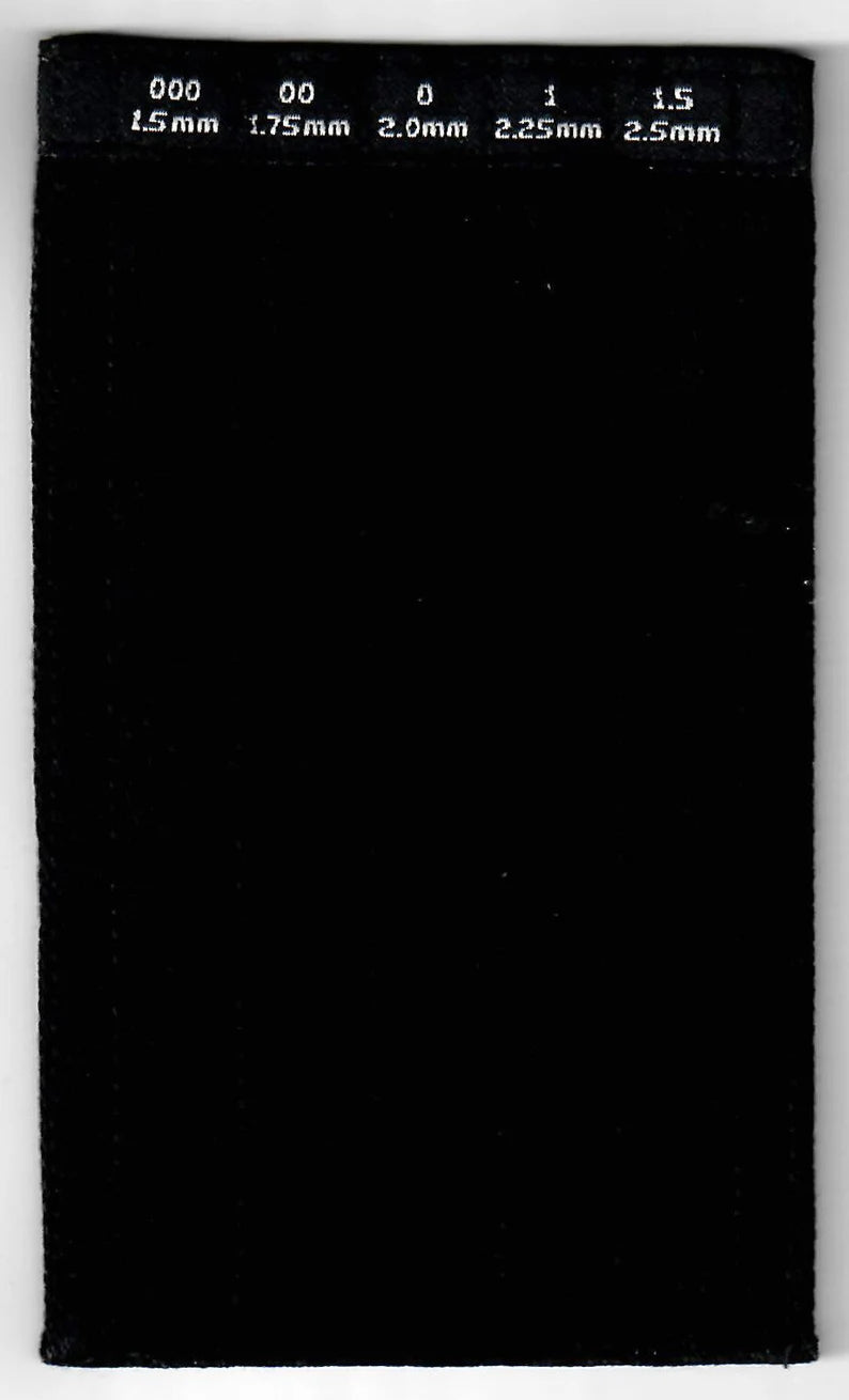 These sleeves are perfect for storing extra ChiaoGoo Mini tips. Has 5 slots for sizes: US 000 (1.75mm), 00 (1.50 mm), 0 (2 mm), 1 (2.25 mm), and 1.5 (2.50 mm). These sleeves fit nicely in most interchangeable sets and cases. Dimensions: 2.75 inches x 4.75 inches (7 cm x 12 cm)