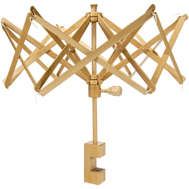 Uniquely designed by Lacis, the classic swift is designed for assuring that the skein always remains in the center of the cage. This package contains one advanced umbrella swift with 14 inch spokes that allow it to handle normal yarn skeins up to 60 inches.