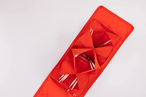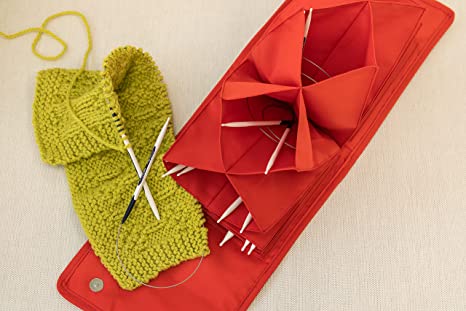 Ingenious fan pocket design hold circular needles securely and avoids tangles. Perfect for storing a large collection of circular needles.