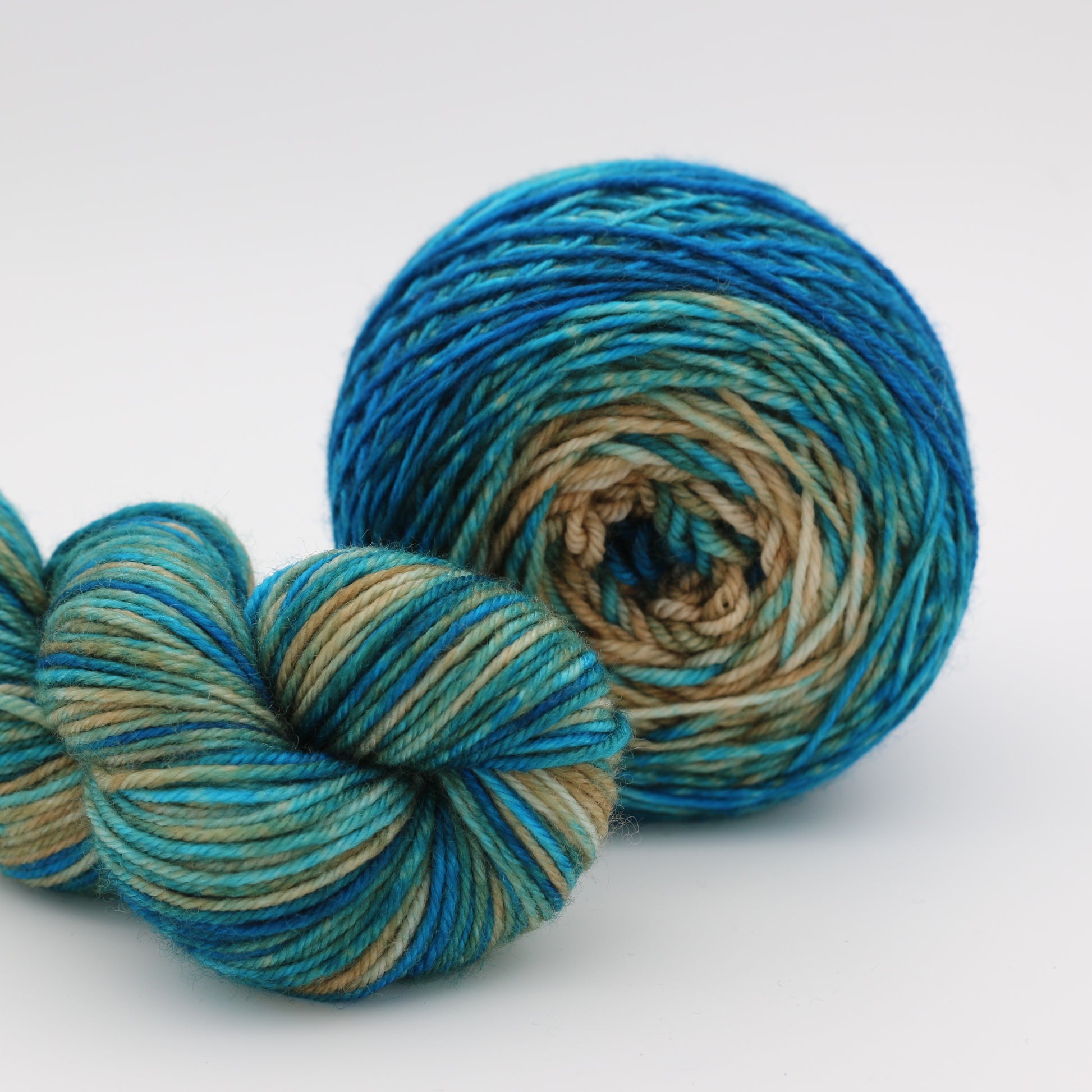 The main factor determining the quality of merino wool is its softness which depends upon the fineness of the fibres. We use extrafine merino (19.5 microns) which is some of the finest commercially available for hand dyers. This results in a supersoft yarn that feels gentle against the skin.